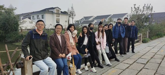 中文系2024级博士班辅导员张潇萌、青年学者班主任刘宏辉、系专职组织员方中书、博士后孟醒老师带领2024级、2023级博士生和部分硕士生于下午1点到达吴房村。吴房村村委会朱佳月、陈佳雯等热情接待了中文系师生一行,详细介绍村情、村貌、村史。大家自吴房村接待中心启程,经四堂间、三治堂、雨木花园、烟火往事、垂钓基地、朵云闲居、人字桥、田心农创市集、法治公园等地标悠然而游,沿着青石板路探寻其悠远的历史底蕴、了解吴房村的现代蜕变之路,一边欣赏村里的大好秋光,在身心愉悦中的旅程中,深刻领略了上海市乡村振兴示范村的独特魅力,充分感受到了上海乡村振兴战略实施所取得的显著成效。