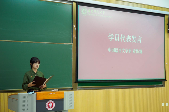 2025级中文系强基班本科生黄佑羽作为学员代表发言。她谈到,文学蕴含感知世界的触角、历史提供纵览全局的视野、哲学带来追寻本质的勇气,三者“和而不同,美美与共”。她表示,本期团校是服务能力提升的“加油站”,希望学员们可以共同成为推动三系团学工作的新生力量。