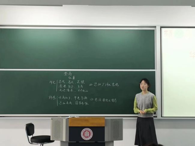 在第二考场,李星霖老师指出,三笔字技能不应成为语文教师进行板书的“拦路虎”,板书应是展示自身语文素养的重要窗口,要起到“画龙点睛”“提纲挈领”的作用,她建议板书书写要做到“少书”“精书”,要书在点子上,书在关键处。