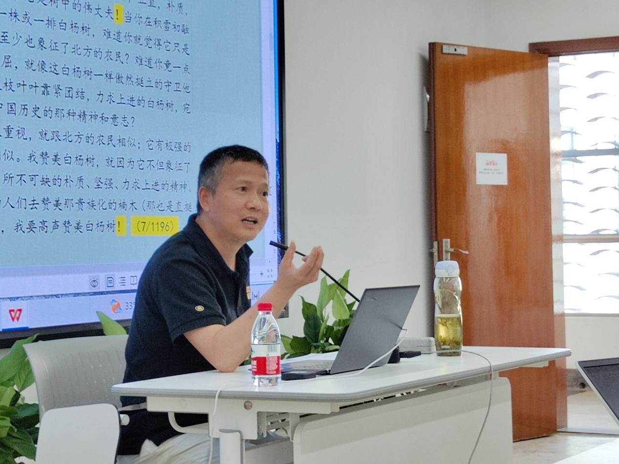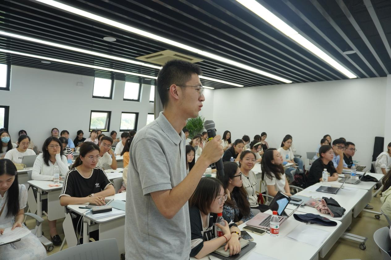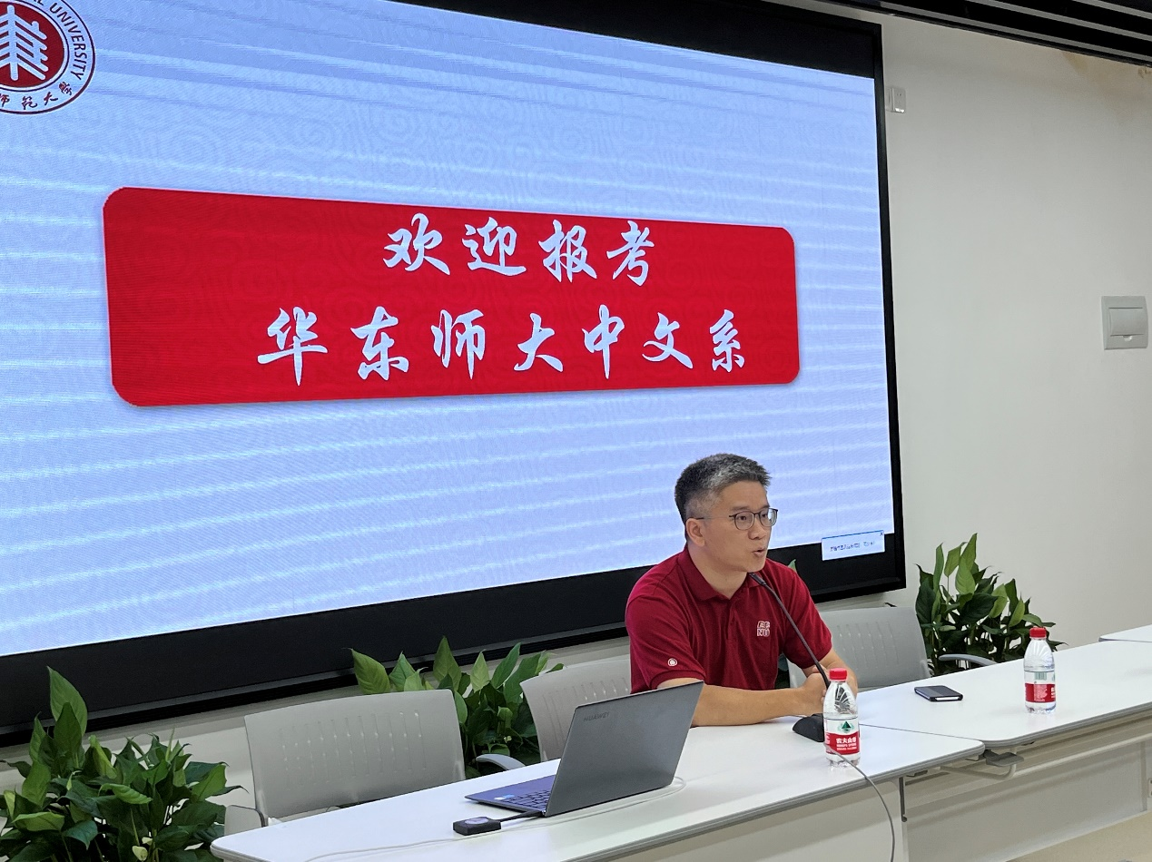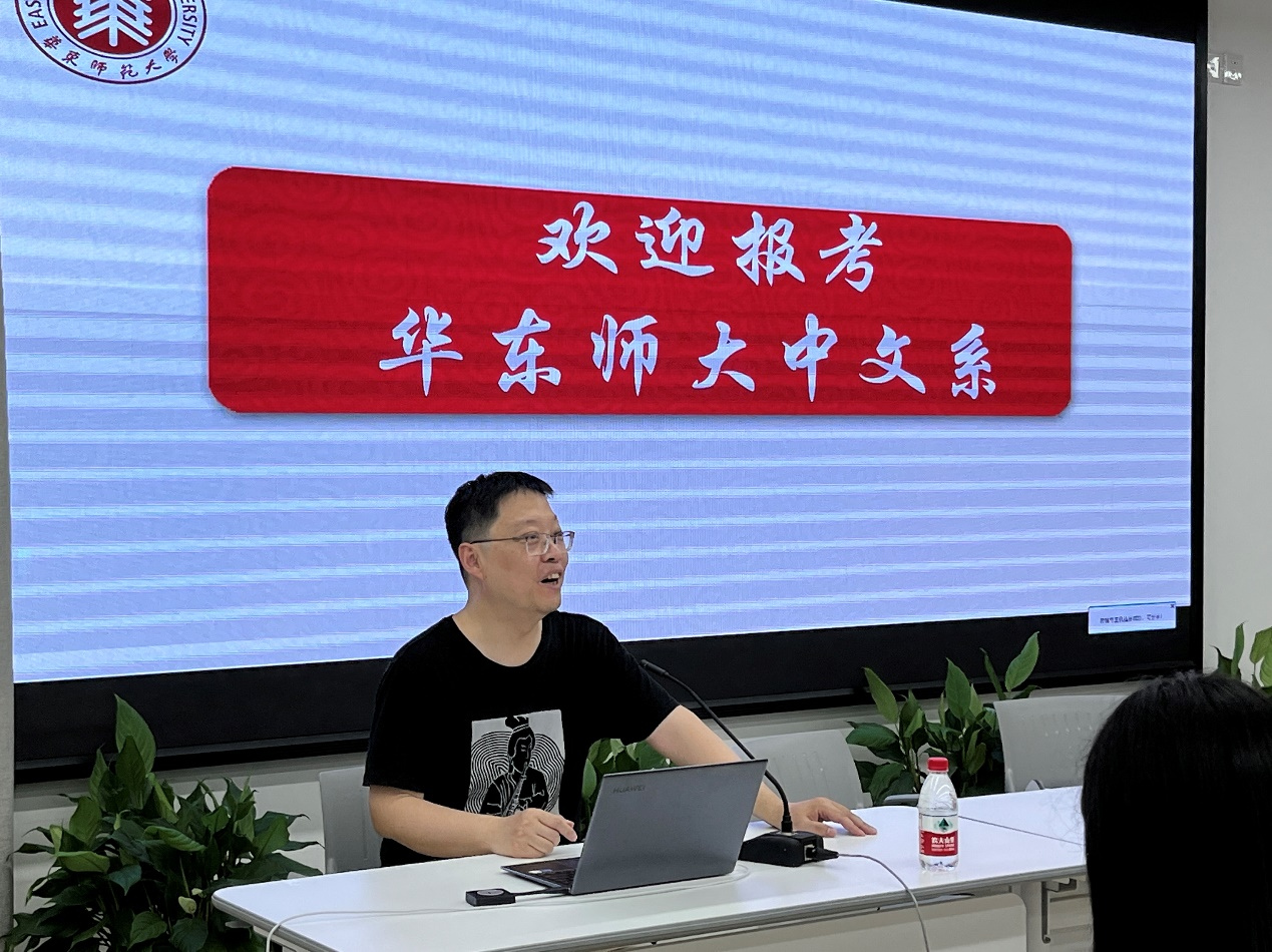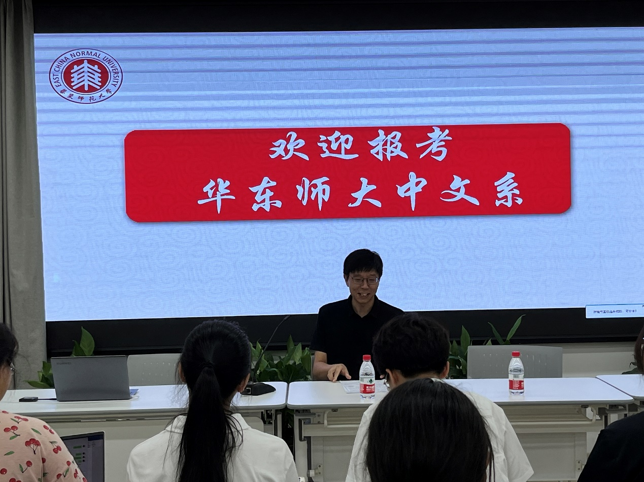 文贵良教授致辞开幕式上,文贵良教授“以38度的热情”感谢各位学子选择和参加华东师大中文系夏令营,并向营员们简单介绍中文系的发展历史和前辈学者。文老师阐述了中文系的学术传统:固本开放 、厚重灵动,以及文学传统,即:情怀社会与关注当下。随后,他从几个方面介绍了中文系研究生的人才培养方案。一方面,中文系注重夯实基础,设立了必读书目考试,以期促进学生多读书、善读书;另一方面也积极支持海外学者访学,扩大学生的国际视野。华东师大与日本早稻田大学、德国哥廷根大学、巴黎东方语言文化学院等海外名校都有合作,每年会选拔同学出国交流。中文系学术氛围自由,学生可以自行组织读书会、自由选择讨论的主题;在学业方面,毕业并不死板地要求发表文章,而是更加注重基础知识的夯实与人文素养的培养。最后,他希望营员们能在夏令营中充分展示自己的才华和学识,也能彼此建立深厚的友谊。开营式结束后,中国现当代文学教研室的倪文尖教授给营员们作了第一场讲座:《从汪曾祺的感叹号说起》。倪老师将文本细读细化到标点符号的层面,比较了汪曾祺《昆明的雨》、余秋雨《道士塔》、朱自清《背影》、茅盾《白杨礼赞》四篇散文中感叹号的使用情况,凸显了汪曾祺使用感叹号的特点。在《昆明的雨》中,作家写回忆对象“雨”时,不用感叹号,而描写所忆的具体内容如杨梅时,多用感叹号,由此分析《昆明的雨》中存在的“现在时态”和“过去时态”,揭示了汪曾祺回忆性散文中两种时态嵌套的结构。讲座获得了营员们的热烈反响,在提问环节,不少营员就讲座中提到的问题,当场向倪老师请教。倪老师一一解答,提醒营员注意学术研究的过程中要学会重视反例,学会做减法,学会提出质疑,这样才能带来深度。第二场讲座由文艺学教研室刘阳教授主讲,主题为《艺术创造中的若干谜题》。刘阳老师结合语言论转向以来哲学思潮的转变背景,引导同学们细致探讨艺术创造的精微奥秘,为使讲座适应各专业的同学,老师从具身感知的维度,以设问为前提,邀请同学们现场观摩丰富的古今中外艺术作品,通过引导性设问将同学们带入讲座的核心话题:“一件艺术作品究竟是如何创造出来的?主体视点和语言在这一过程中处于何种位置?”刘老师分析了不同观看方式形成的潜在估计,其后从正反两面切入,厘清对估计的修正与试验属于真实还是错觉的问题,并通过对创作过程中时间与逻辑观测结果所形成的认知差异,提醒同学们注意艺术中自控兼容受控的活动和过程,从而导出常规与反常规意义上审美的事件性实质。讲座结束之后,刘阳老师还加入了夏令营营员群,跟营员们继续交流答疑。7月6日晚,夏令营专业介绍与政策咨询介绍会在人文楼4430会议室举行,中文系研究生教学秘书吴晗担任主持。中文系副系主任方笑一、汤拥华教授、系主任助理王耐刚副教授和创意写作研究生教学秘书叶杨莉老师出席该活动。会上,方笑一教授首先对中文系的建系历史、师资队伍、学术平台、研究生培养与课程设计作全方位的介绍。汤拥华教授从自己博士求学说起,聊到与其他青年老师的结识、交游等经历,进一步分享自己到华东师大求学的感受,并寄愿同学们能够“有勇气和热情去追求美好的事物”。王耐刚副教授介绍了中文系中国古典文献学的学科历史和培养方案,鼓励同学们勇于开拓自己的边界,寻找自己热爱的就业方向。随后,中文系研究生教学秘书吴晗与创意写作研究生秘书叶杨莉主持答疑环节,现场解答营员们关于中文系研究生学习的相关问题。7月7日,中文系各教研室对营员们进行了专业面试,通过专业知识、英语口语能力等多方面的考察,选拔出的45名优秀营员将获得预录取资格。专业面试结束后,为期两日的夏令营活动就此落下帷幕。通过夏令营活动,来自全国各地的学子们切身感受了华东师大中文系独特的人文底蕴和名师风采。华东师大中文系的大门将永远为怀揣热诚的学子们敞开。