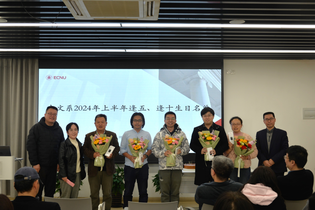 集体生日会首先由系工会主席韩蕾宣布中文系今年上半年逢五逢十教工生日名单,接着在热烈的掌声中,中文系吕志峰书记、文贵良主任,及韩蕾主席给到场的老师们送上鲜花、纪念品和诚挚的慰问,并一同合影留念。中文系80余名教职工参与此次集体庆祝活动,大家一起共享生日喜悦、分享生日蛋糕,共话中文系发展。