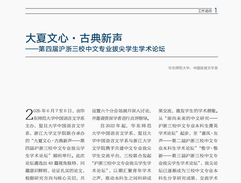 近日,该论坛通讯稿——“大夏文心·古典新声”入选第二十期教育部基础学科拔尖学生培养计划2.0内刊《拔尖通讯》。
