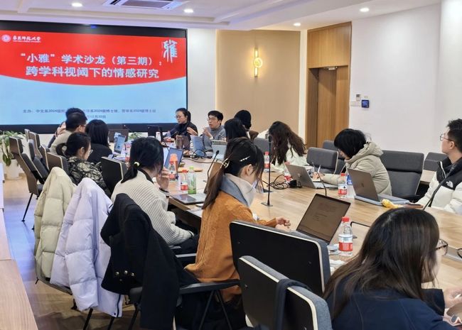 “小雅”学术沙龙是由中文系2024级博士班发起的研究生学术交流活动,“小雅”取自 自慰视频 前身之一光华大学于1930年创刊的文学类校园刊物《小雅》,并由 自慰视频 终身教授刘志基教授题签。本次沙龙的主题是“跨学科视阈下的情感研究”,邀请了哲学系陆凯华副教授评议,来自文、史、哲三家院系的5位博士生分享了他们各自在情感研究领域的独特见解。三家院系的二十余位博士生参与,并从各自学科的视角出发,围绕情感的多重维度展开了深入的交流与讨论,展现了跨学科合作的学术价值。本次沙龙由中文系2024级比较文学与世界文学专业任育杰同学主持。
