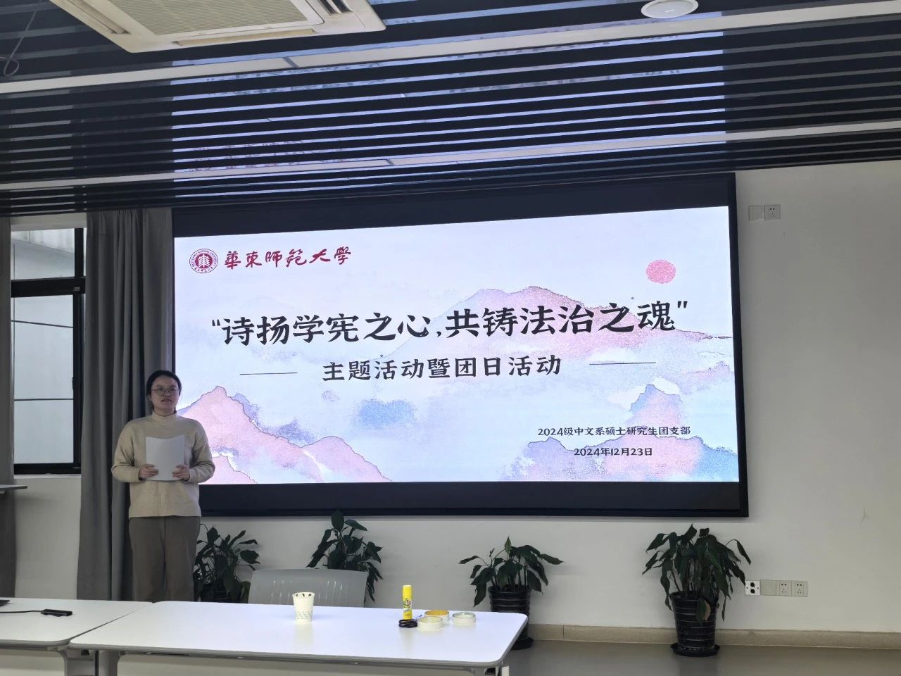 2024年12月4日是第十一个“国家宪法日”。中文系硕士班“诗扬学宪之心,共铸法治之魂”主题活动将专业学习与宪法学习相结合,旨在引导学生深入理解宪法精神,以实际行动维护宪法权威。未来,中文系将继续举办宪法主题活动,加强宪法法治教育,营造校园法治氛围,加深学生对全面依法治国重要性的认识,为推进国家治理体系和治理能力现代化贡献青春力量。