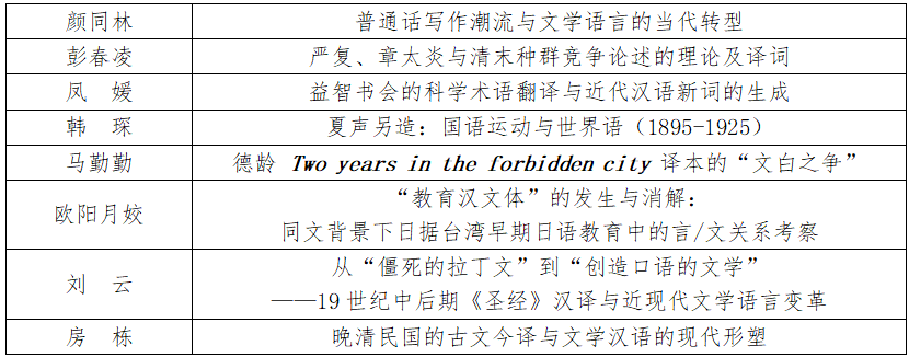 四川大学文学与新闻学院副研究员欧阳月姣集中讨论在日据初期台湾国语教育中文体的问题,以东亚为视域,联系汉字、汉文等概念介入台湾的语言问题中,借此与大陆的国语运动研究形成对话。