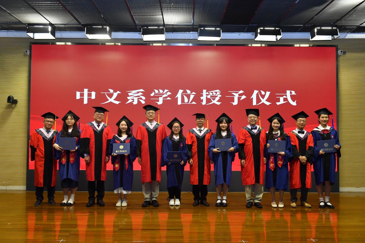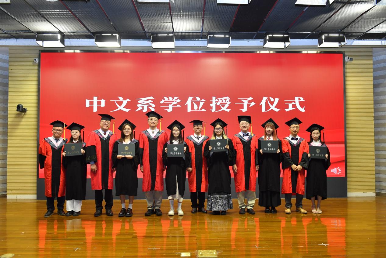 随后,中文系学位评定分委会副主席、副系主任方笑一教授宣读学位授予名单,导师们为毕业生逐一拨苏正冠、颁发学位证书。