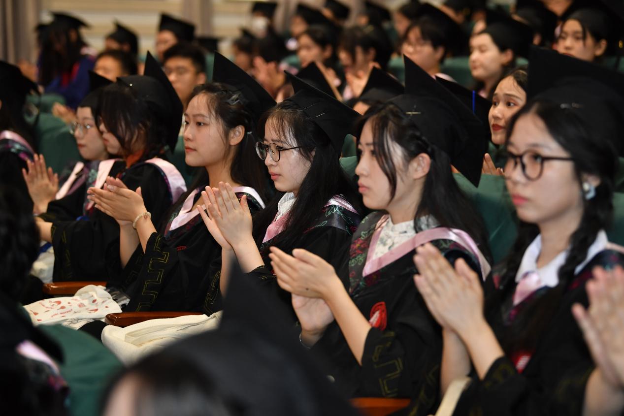 教师代表刘晓丽教授以“我只说给你们听”为题,向毕业生们讲述了许多独属于中文系的动人故事。她祝福同学们都能以自己独一无二的方式,领悟生活中的美好,在罕见而珍贵的时刻中认识自己、认出自己、成为自己,去寻觅远方的星辰大海,让听到的声音转变为指引自己前行的力量。