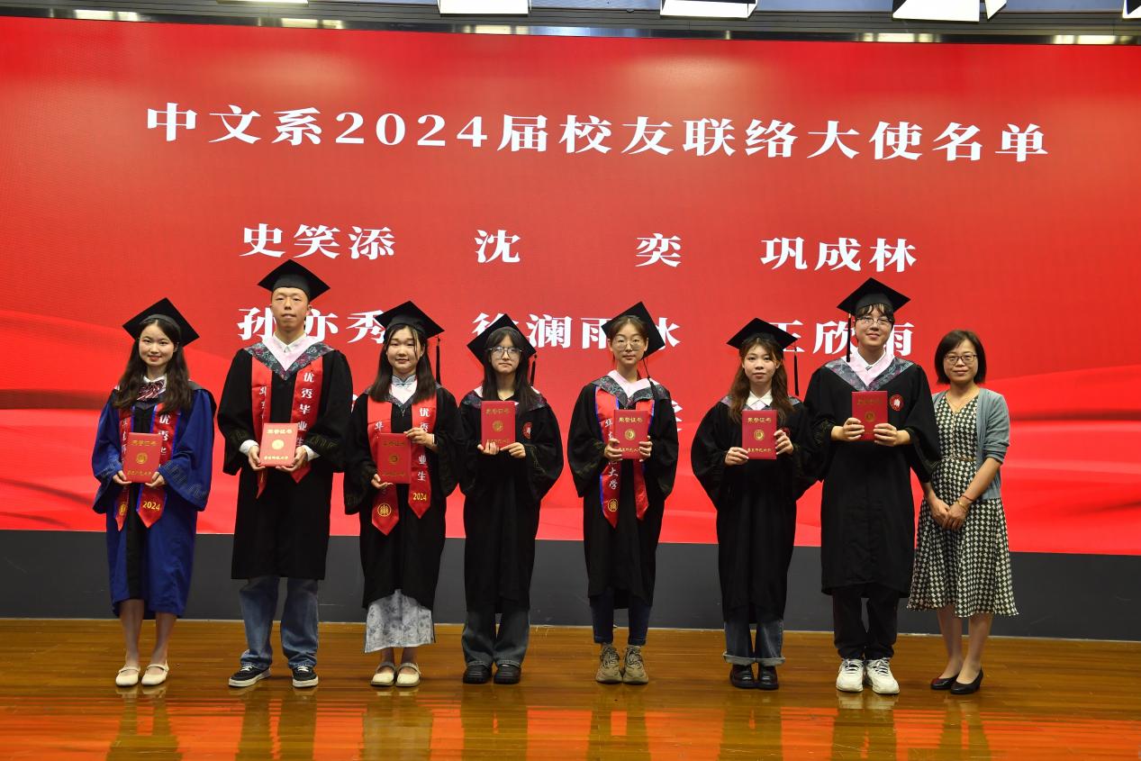 中文系党委副书记徐燕婷副教授宣读了校友联络大使名单,并为同学们颁发校友联络大使聘书。中文系的建设和发展离不开各届校友的支持,校友联络大使是院系与校友沟通的桥梁,受聘的毕业生们也将继续讲好师大故事,不断支持中文系未来的发展。