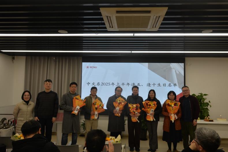 中文系工会主席韩蕾老师宣读“逢五、逢十”生日名单,并代表全系向教师们致以诚挚祝福,感谢他们在学科建设与人才培养上的辛勤付出。系主任罗岗老师、系党委书记徐默凡老师为逢五、逢十生日的教师们送上鲜花与纪念品并合影留念。生日会上,教师们一起畅谈教学心得与生活趣事,欢声笑语不断。