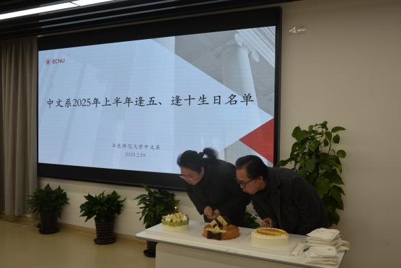 2月19日,为弘扬尊师重教传统,增强教师归属感与凝聚力,中文系工会在人文楼4430多功能报告厅为2025年上半年逢五、逢十生日的教师举办了一场温馨的集体生日会。