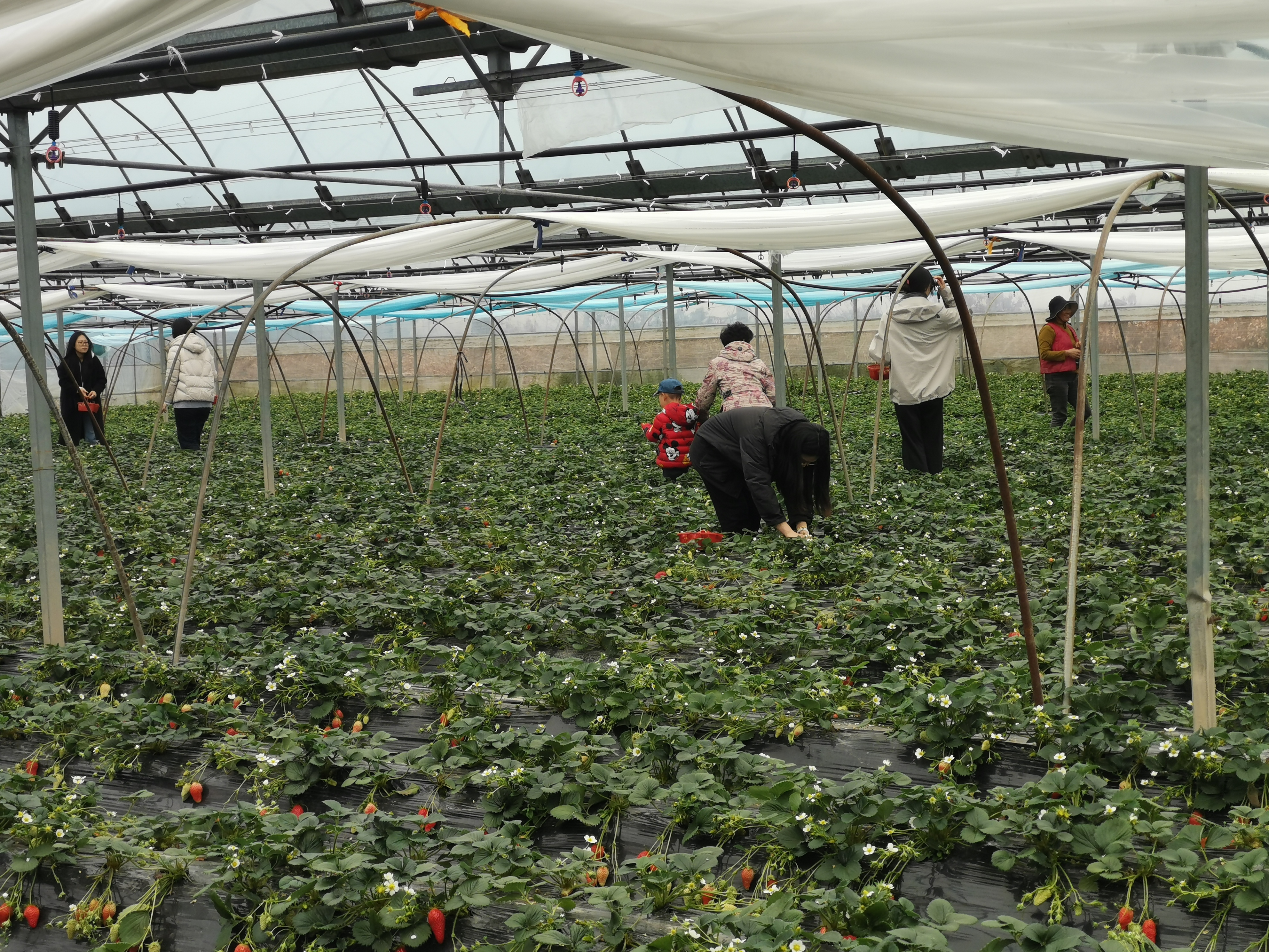 中午12:30,满载着欢声笑语的大巴车从学校出发,一路上,女教师们兴致勃勃,期待着即将到来的春日之旅。抵达草莓园后,映入眼帘的是一片片绿意盎然的草莓大棚,红彤彤的草莓点缀其间,仿佛一颗颗红宝石,散发着诱人的色泽和香气。在工作人员的带领下,大家领取了采摘篮,迫不及待地钻进大棚,开启了一场甜蜜的“莓”好邂逅。