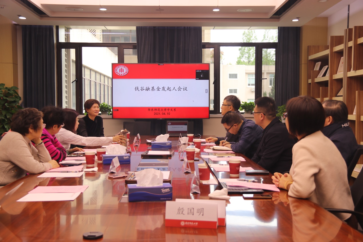 2021年4月10日,钱谷融基金发起人会议在华东师大中北校区文科大楼201会议室举行,会议采用线上线下结合的方式进行。钱谷融基金发起人部分代表李莲娣、李元红、毛时安、倪文尖、钱倩、孙桂华、吴俊、赵抗卫和中文系系主任文贵良、系党委书记吕志峰、系办公室主任曹姗姗与会,发起人许子东、殷国明线上参会。会议由中文系党委副书记徐燕婷主持。