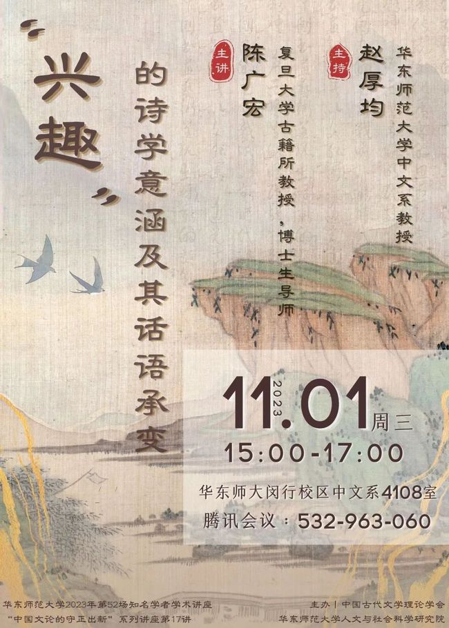 讲座主题:陈广宏:“兴趣”的诗学意涵及其话语承变