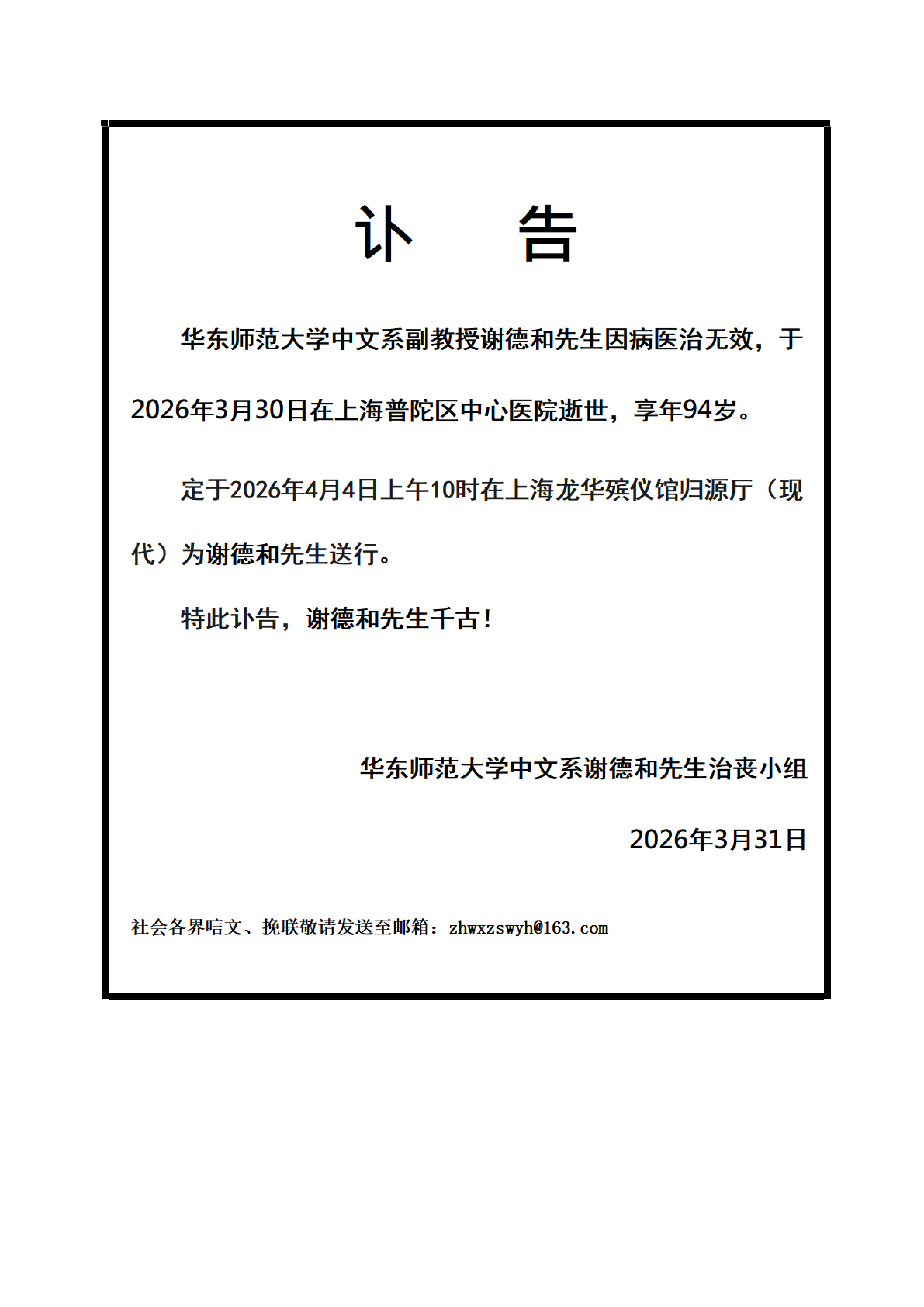 沉痛悼念谢德和老师!