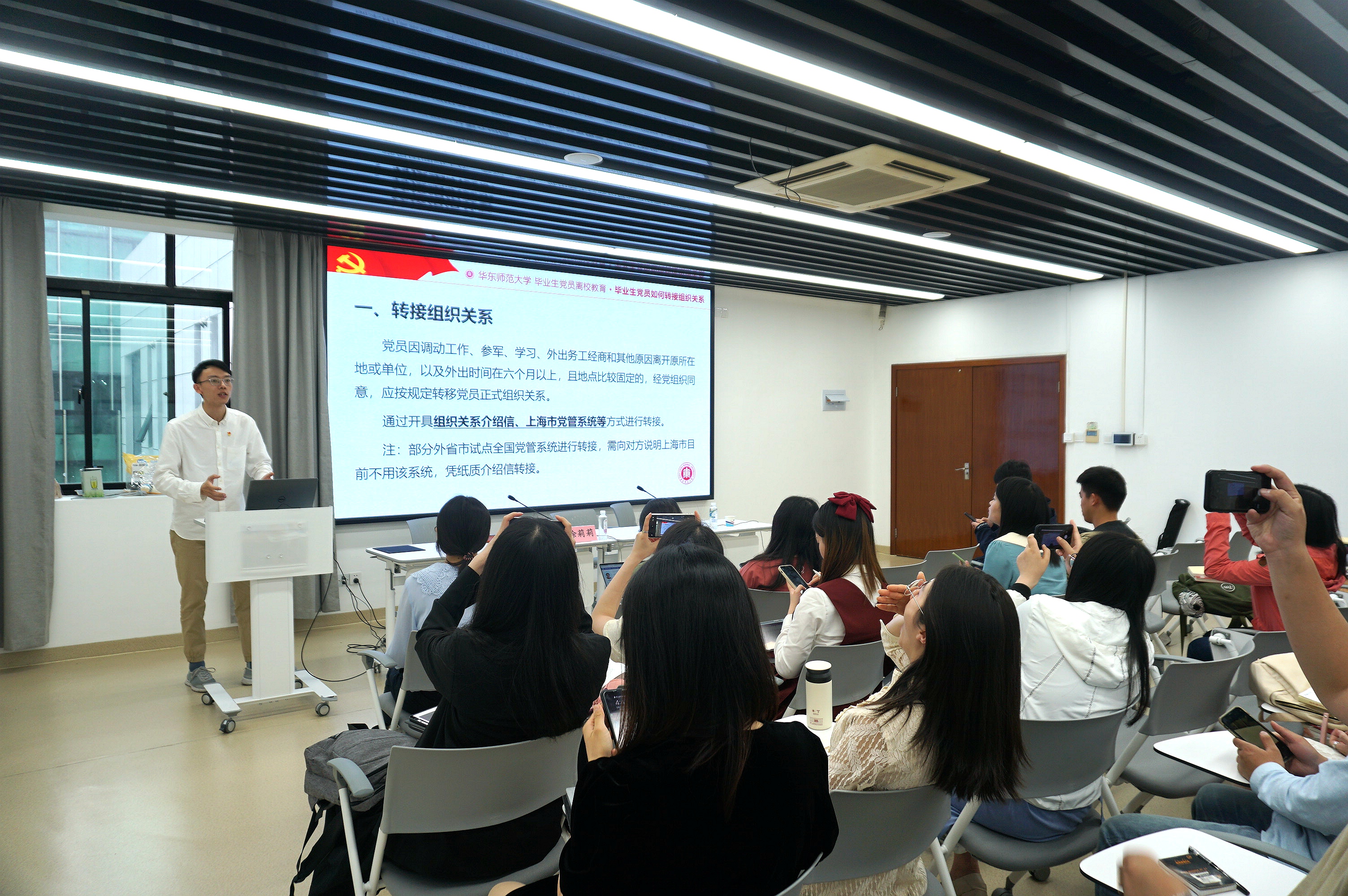 在开展“毕业党课”之后,为确保中文系2021年毕业生党员组织关系的顺利转接,中文系专职组织员方中书老师对毕业生党员组织关系转接进行了培训指导。首先,他对毕业生党员转接组织关系的目的和重要性方面进行强调,并对不同去向的毕业生党员进行分类指导,通过填写示例等形式,重点对转接组织关系流程、问题处置、介绍信开具、反馈等事项进行了说明指导。