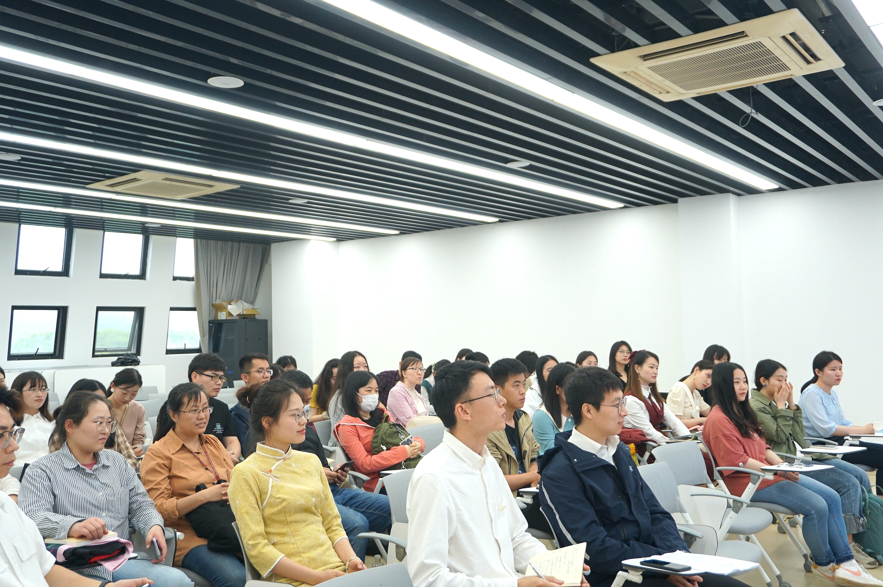 首先,徐燕婷老师对李莲娣、徐莉莉两位老师的到来表示热烈欢迎和感谢,她在开场主持中谈到,自己毕业于华东师大中文系,也一直为中文人的身份感到骄傲;同时她也希望即将毕业的党员们,无论身在何处,樱桃河畔中文人的因子能始终存留于身。