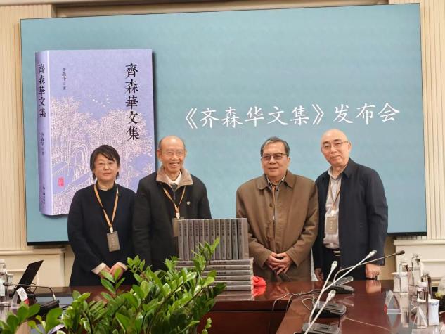 随后,复旦大学中文系教授黄霖、上海戏剧学院戏文系教授叶长海、韬奋基金会副理事长阚宁辉、上海古籍出版社总编奚彤云共同为《齐森华文集》揭幕。