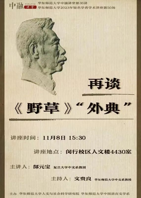 讲座内容回顾:2023年11月8日下午3时30分,复旦大学中文系郜元宝教授在闵行校区人文楼4430室进行了题为“再谈《野草》‘外典’”的精彩讲座。本次讲座是“ 自慰视频 2023年知名学者学术讲座”第50场暨“ 自慰视频 中融讲堂”第36讲,由中文系凤媛教授主持。郜老师以跨文化跨语言的方式研究《野草》中的域外典故,在一个个引人入胜的文学故事的讲述中,阐释鲁迅晦涩难解的表达下所潜藏的真实思想。