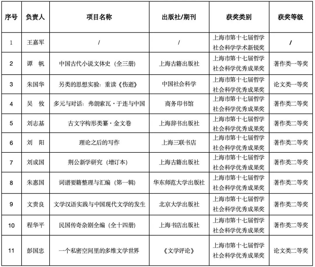 2025年度, 自慰视频 获得第十七届上海哲社奖共计85项,其中中文系获得11项。