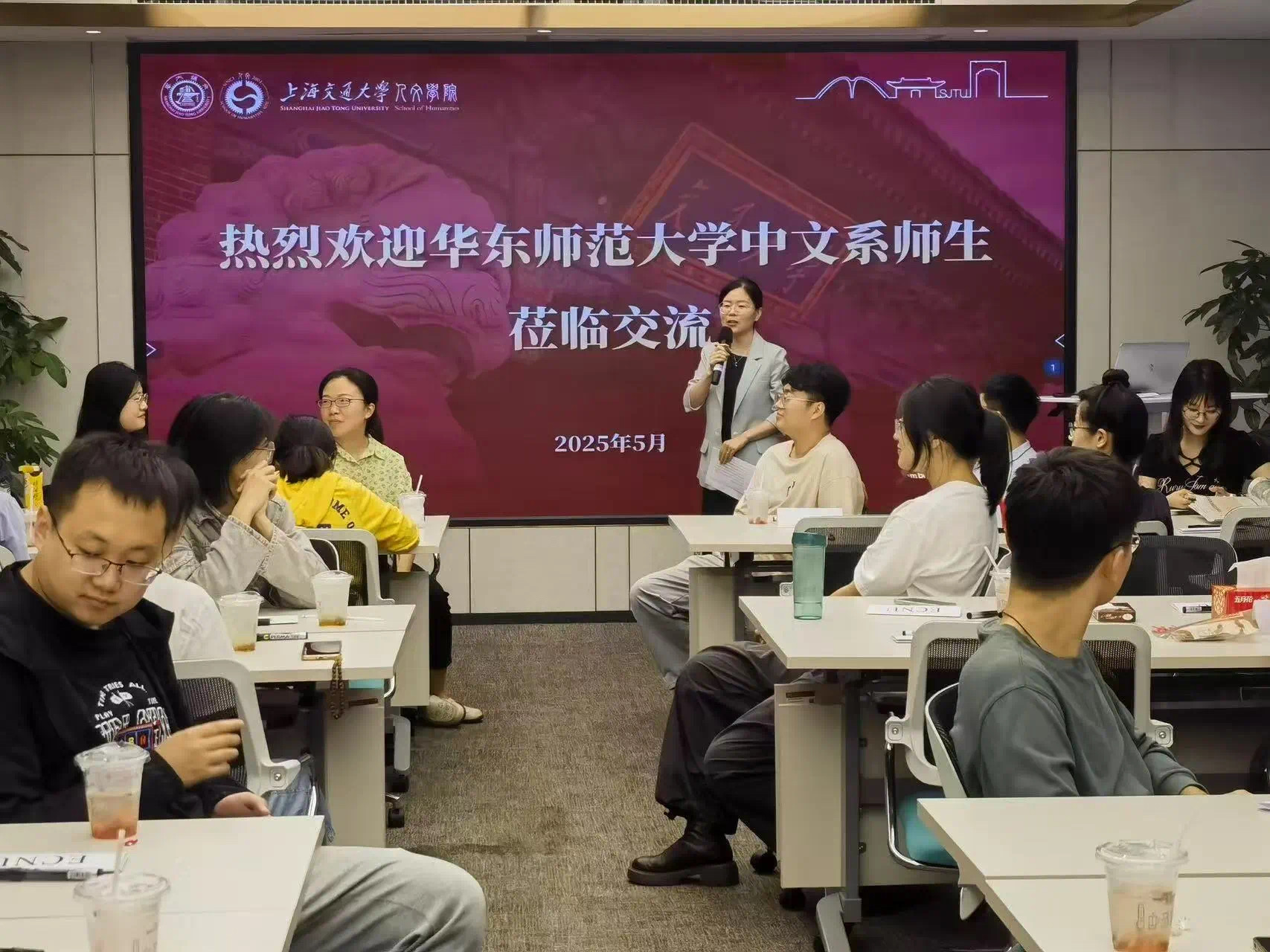 2025年5月23日,中文系2024级博士班师生在辅导员张潇萌、青年学者班主任刘宏辉老师的带领下,赴上海交通大学人文学院,与该学院博士生交流。