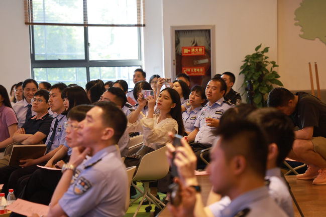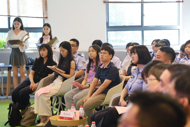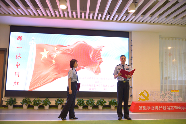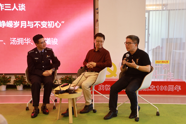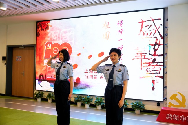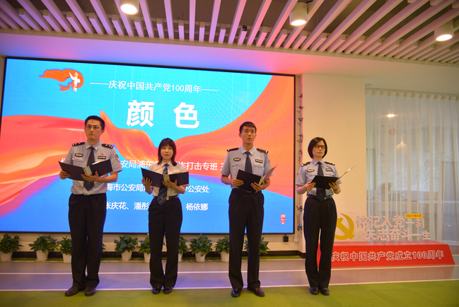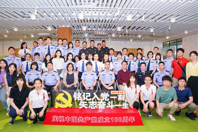 师生与上海市公安局宣传处副处长张蓉等数十位公安民警汇聚一堂,品读诗词,共话百年党史,用诗歌和朗诵的力量为建党100周年献礼。
