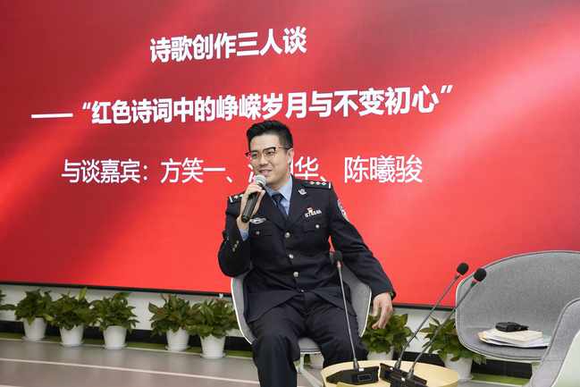 央视《中国诗词大会》的播出在全国掀起一阵“诗词热”,本次活动还特邀《中国诗词大会》命题组专家、华东师大中文系副系主任方笑一教授,知名批评家、华东师大中文系副系主任汤拥华教授与上海市公安局轨交总队民警、央视中国诗词大会第六季总冠军陈曦骏警官现场对谈,围绕“红色诗词中的峥嵘岁月与不变初心”畅谈诗歌创作。