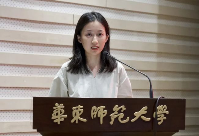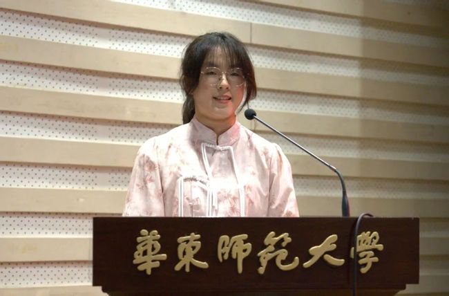 2024级本科生新生代表周星贝以《诗经》中“采诗官”的故事为引,谈论了她对于虚构之于文学、文学之于现实的意义的理解,并由此指出作为华东师大中文系的新一代传承者关照当下、记录时代的使命,呼吁中文系的同学们心怀天下,细品人间,踔厉奋发,不负韶华。