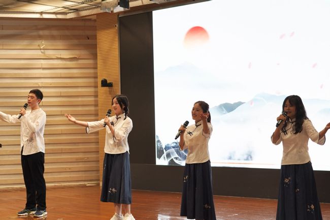 文学殿堂,书声漫,理想越云端。典礼步入尾声,中文系2023级邓雅文、李赵颖,2024级姜伟麟、汪美含等同学为新生献上改编歌曲《青花瓷·中文系版》,用深情的词句表达了中文系独特的浪漫情怀,敬各位学子前程似锦,未来可期,不负这最美的相遇。