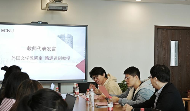 2023年11月29日,中文系召开2023-2024学年秋季学期本科师生座谈会暨卓越育人“回头看”系列活动之一,座谈会由中文系分管本科教学工作的副系主任汤拥华教授主持,校教学督导韩蕾教授、青年教师隋源远、徐俪成、印志远、陈田珺老师,教务处王静老师,本科生辅导员赵景玮老师,本科教学秘书左媛、缪晶晶老师,以及2021、2022、2023级学生代表共同参加了座谈。