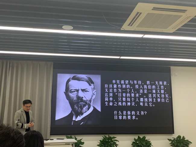 交流的最后,杨宸老师引用了马克斯·韦伯在《科学作为天职》中的内容总结,鼓励同学们在 面对当下升学就业困境之时积极实践、勇于探索,从而寻求适合自己的发展道路。
