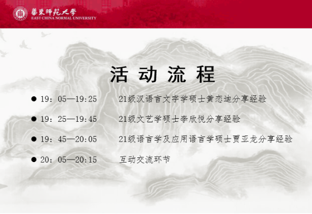 2022年10月13日与10月20日,由华东师大中文系研究生会主办“中文之路”系列学术交流活动第一期——“书山寻路”读书方法指导交流会活动成功举办。本活动旨在针对研一新生入学初期在读书方法上的“痛点”与“难点”提供解决方案,活动以“朋辈交流”的形式展开,分为两场举行,共计130余名校内外同学参与其中。