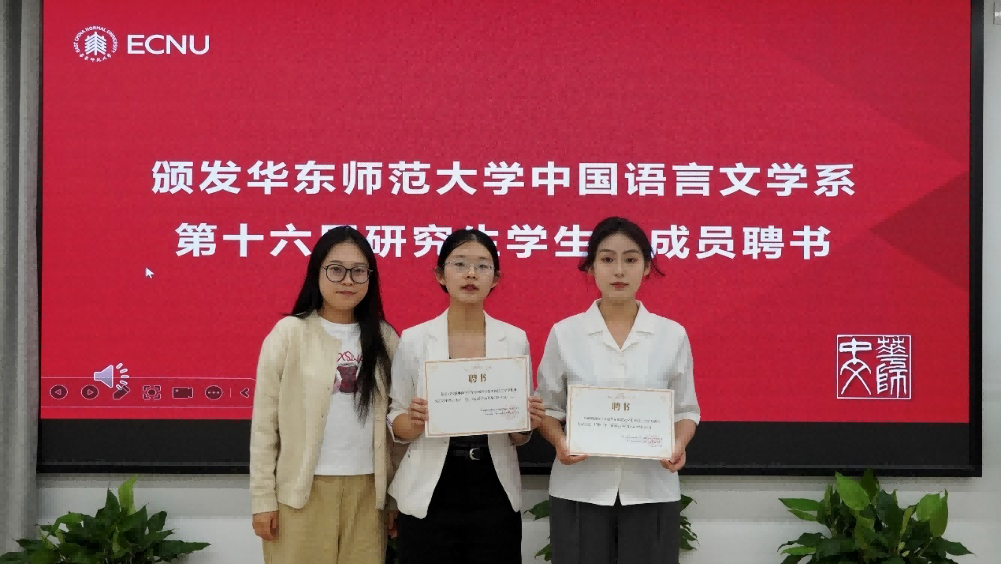 中文系团委书记王钰老师、研究生辅导员李思瑶老师为中文系第十六届研究生会主席团成员颁发聘书,并为2024-2025年在中文系研究生会获得“优秀干事”荣誉的干事们颁发荣誉证书,以鼓励新一届研究生会的干事们以更加昂扬的斗志投身学生工作。