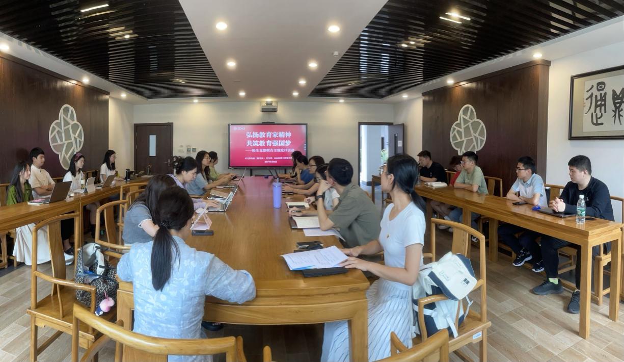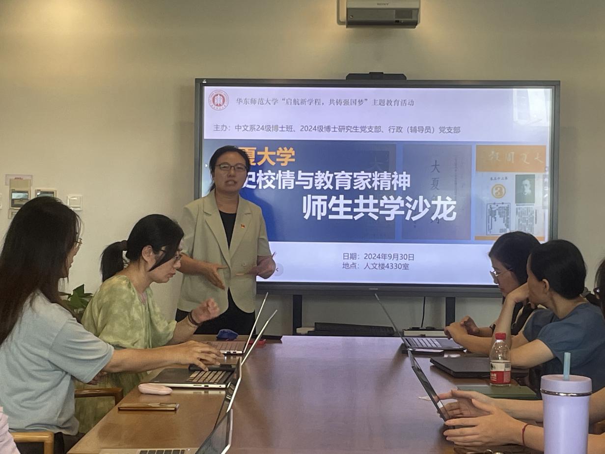 为深入贯彻全国教育大会精神,探索教育家精神的内涵实质,加强师生党支部的互融共建,2024年9月30日,中文系行政(辅导员)党支部与中文系2024级博士研究生党支部在人文楼4108会议室联合开展“弘扬教育家精神 共筑教育强国梦”主题党日活动。中文系党委副书记、行政(辅导员)党支部书记徐燕婷,系办公室主任曹姗姗,行政(辅导员)党支部吴晗、张潇萌、方中书、焦艳、杨芳、叶杨莉、郑邵琳等教职工党员,以及2024级博士研究生党支部全体党员、入党积极分子参加,活动还邀请了2024级博士班部分团员参会。活动由2024级博士研究生党支部书记田丽媛主持。