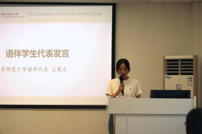香港教育大学学生代表冀一诺分享了从忐忑到自信的心路历程,表达了对全体授课教师及语伴的由衷感激。华东师大语伴代表王苑木讲述了与香港同学从陌生到默契,共同攀登语言高峰、沉浸文化长河的珍贵体验,见证了双向奔赴的成长。