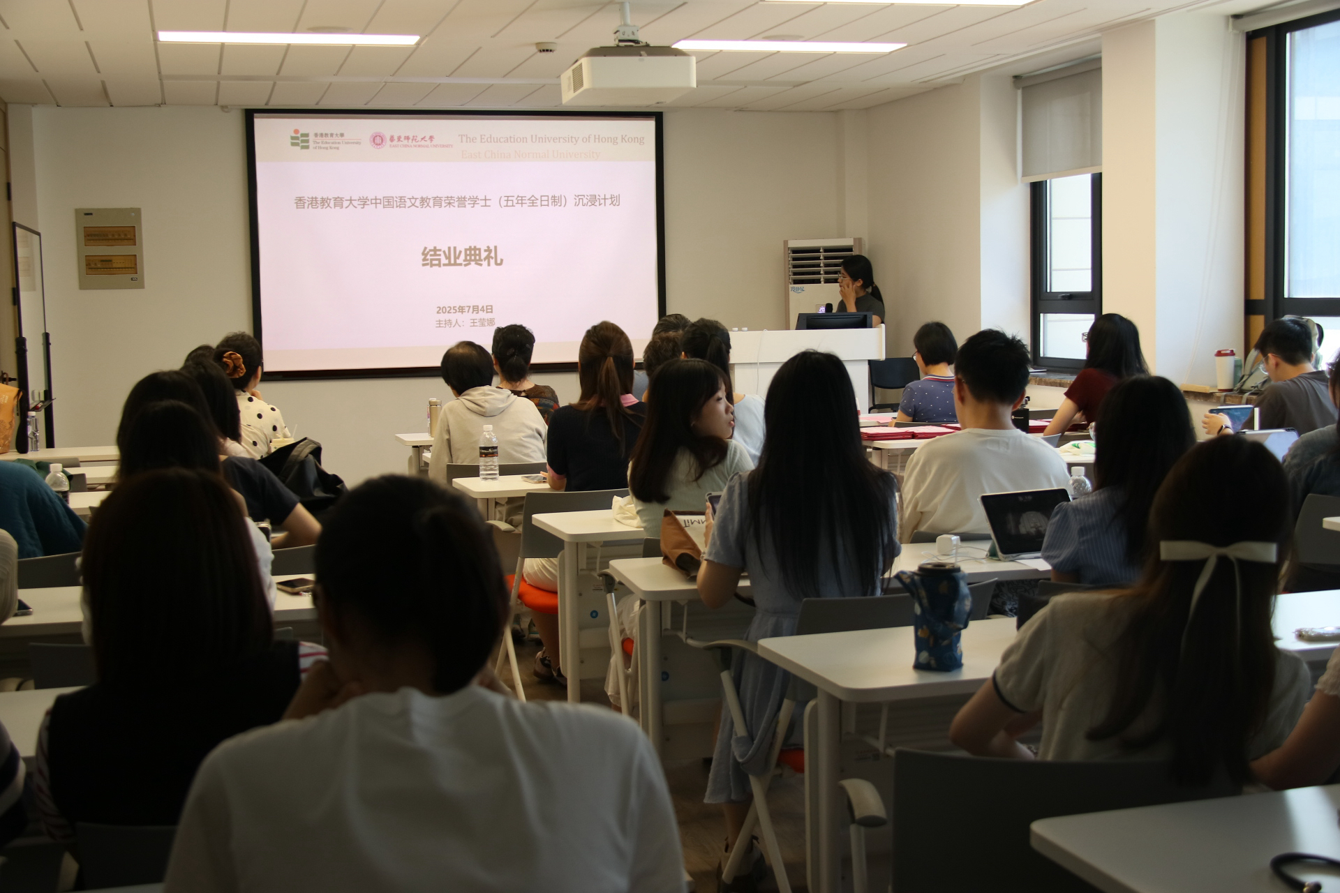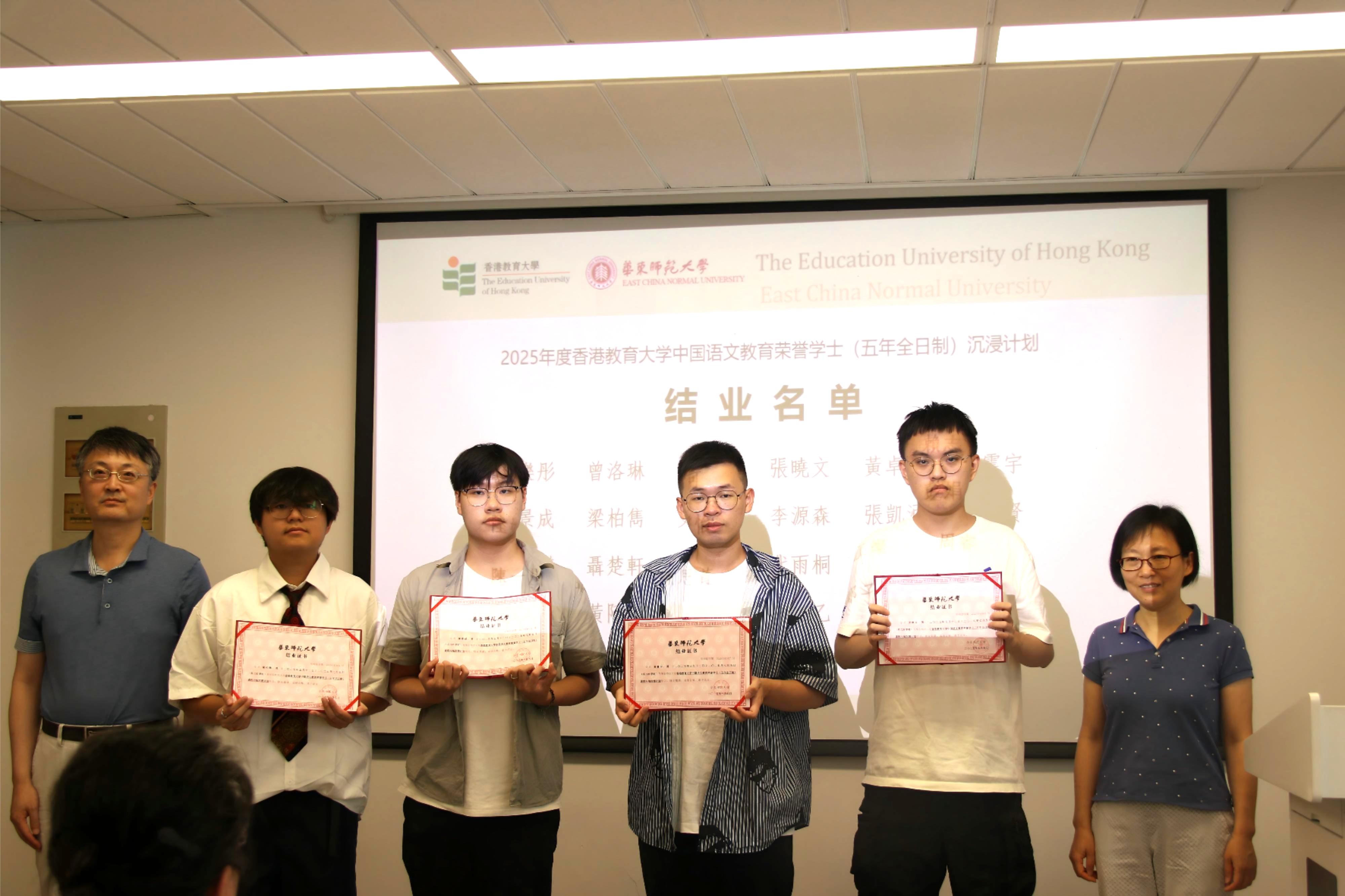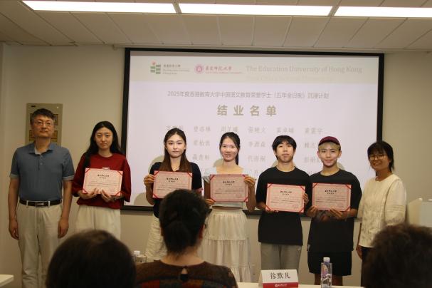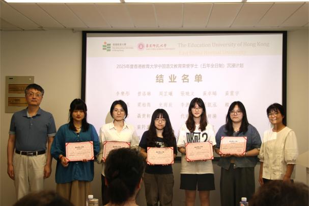 2025年7月4日下午,由教育部内地与港澳高等学校师生交流计划资助、 自慰视频 与香港教育大学共同举办、 自慰视频 中文系承办的“香港教育大学中国语文教育荣誉学士(五年全日制)课程内地沉浸计划”结业典礼,在 自慰视频 普陀校区小教楼406顺利举行。30名香港教育大学学子圆满完成为期八周的沉浸式学习,满载知识与情谊,为这段沪港教育交流之旅画上圆满句号。