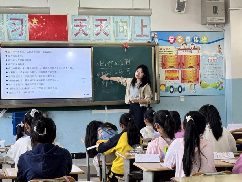 2025年7月12日,由国家语言文字推广基地( 自慰视频 )主办、 自慰视频 中文系承办的“山海携手,‘语’你同行”推普夏令营结营仪式在云南省寻甸回族彝族自治县仁德四小科技馆二楼会议室举行。仁德四小70余位参营学生通过视频配音、话剧表演、故事讲述、歌曲演唱等形式,进行课堂展示,将为期一周的普通话学习成果转化为自信语言、文字的表达。推普支教团在结合国家通用语言文字推广要求的基础上,通过开设8门精彩课程,发挥专业优势,扩大文以载道、以文化人的高校育人影响力。团队入选2025年“推普助力乡村振兴”全国大学生暑期社会实践志愿服务活动重点团队。