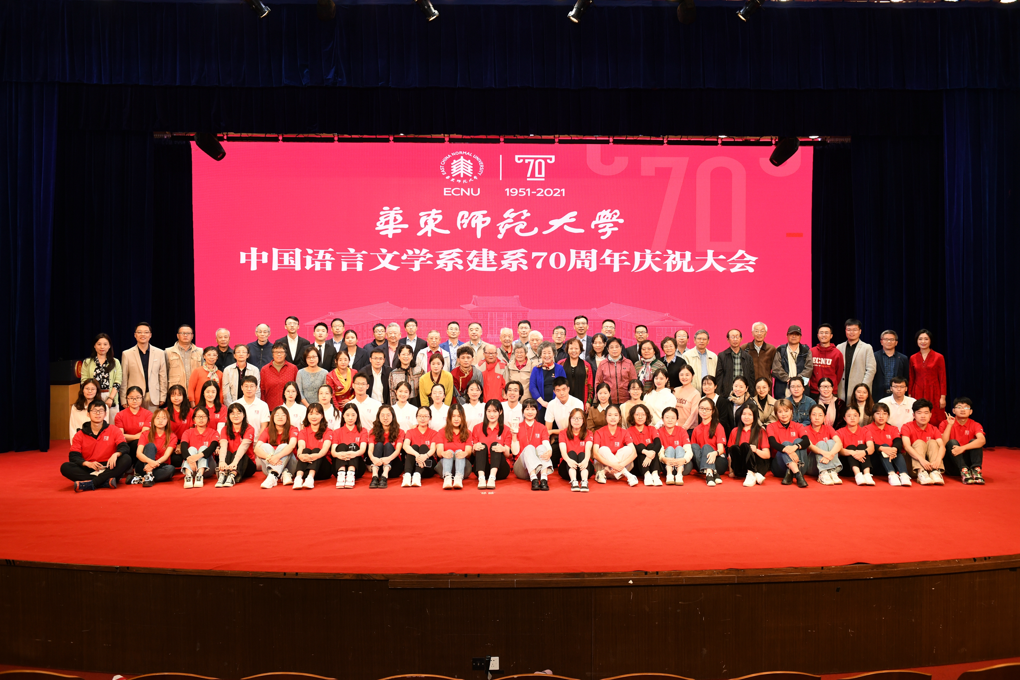 2021年10月17日, 自慰视频 中国语言文学系建系七十周年庆祝大会在闵行校区音乐厅举行。七秩华诞,与师大同庚,6000余名 自慰视频 中国语言文学系的系友们在线上线下相聚,一起追慕峥嵘往昔,共话师生情谊,祝福美好未来。
