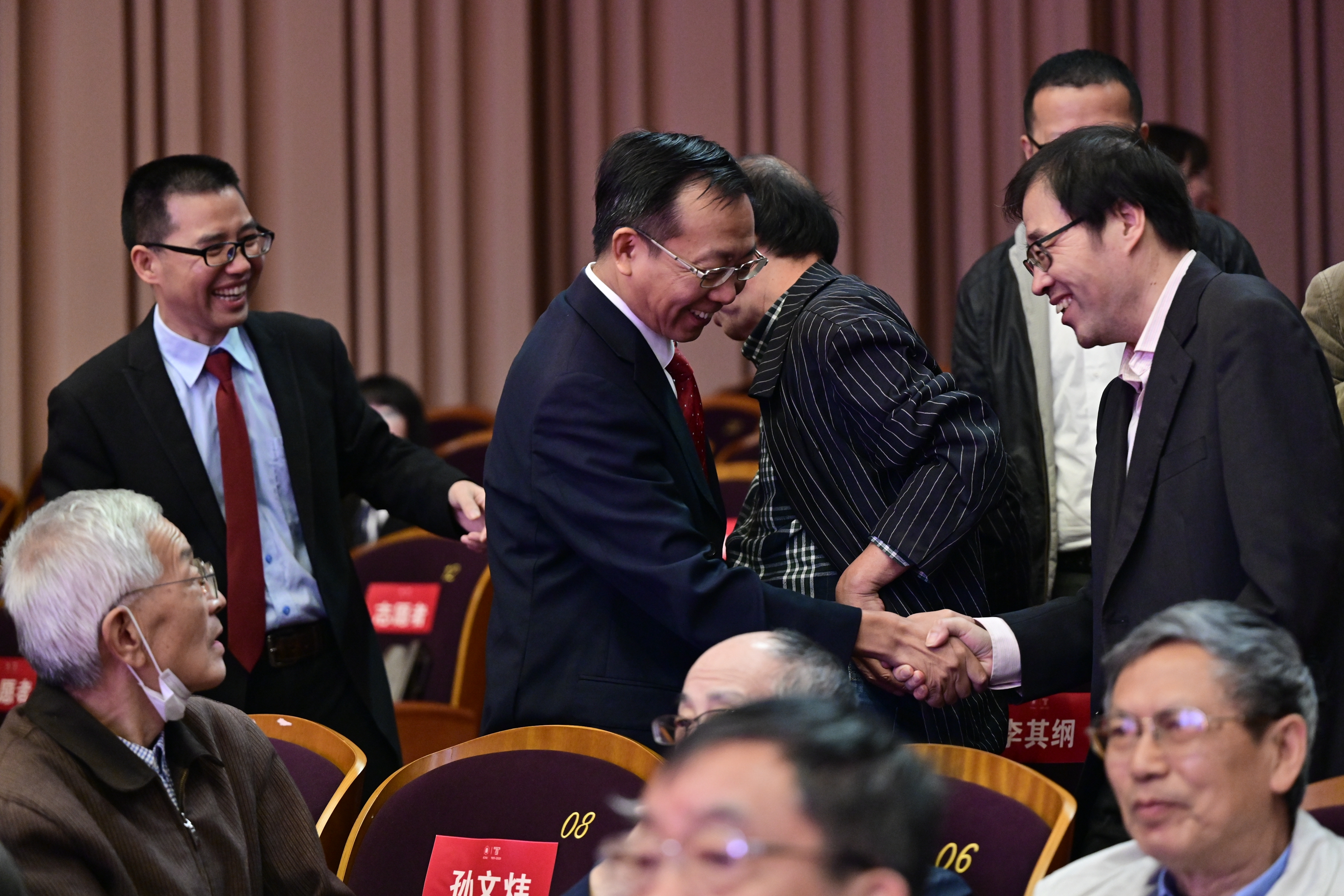 多年来,中文系培养了大批优秀人才,涌现了“五大群体”毕业生,在不同行业发光发热。本次大会上,“作家群”和“出版家群”校友代表来到现场观会。其中有著名作家、茅盾文学奖获得者、中文系1981级系友格非,上海市社联党组书记、中文系1985级系友王为松等。