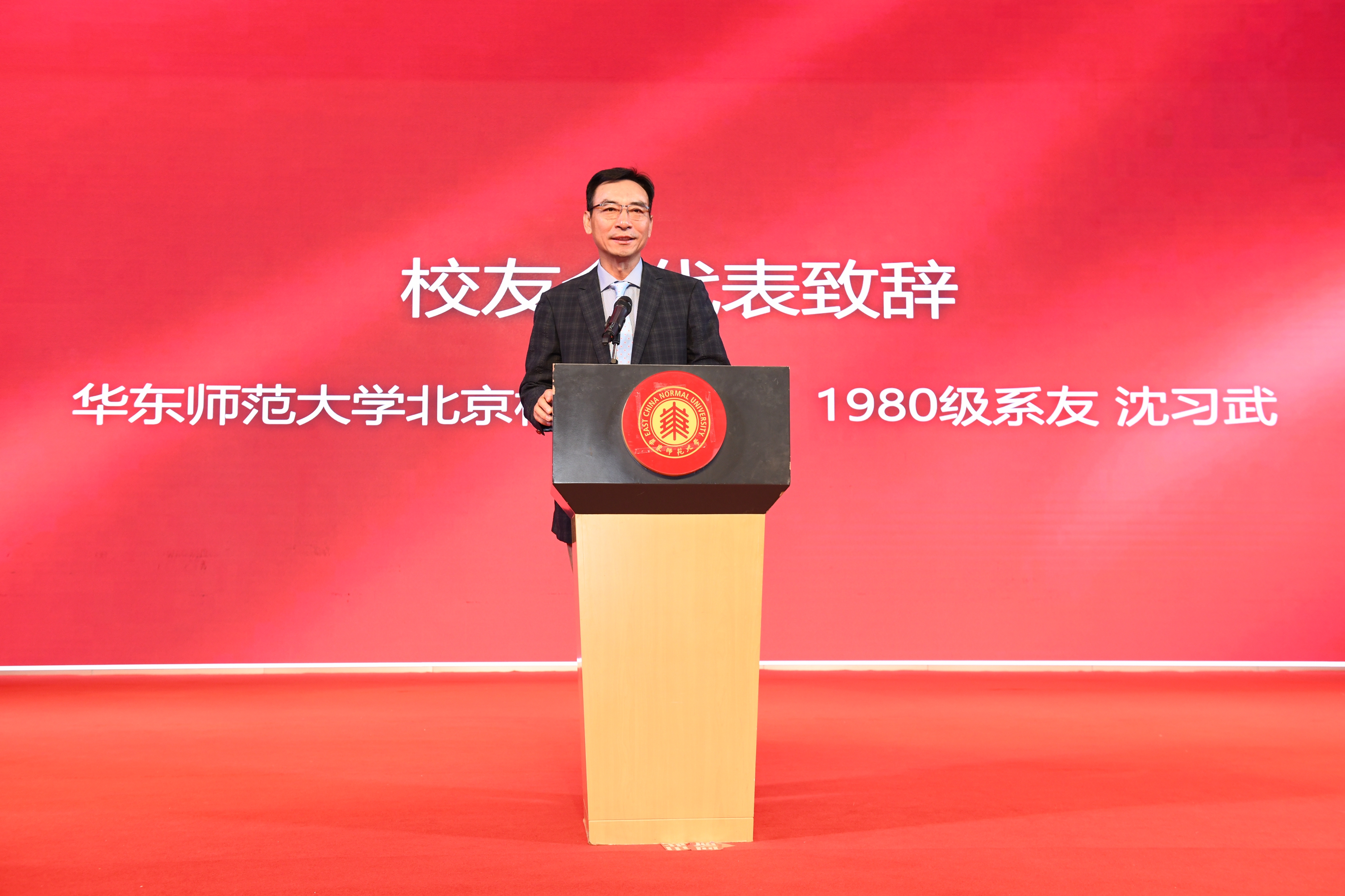 大会现场,王为松系友发表了题为“我们这一代的爱与怕”的演讲,他回顾在中文系求学的经历,以“爱”与“怕”两个关键字来描绘那段与文学有关的学生时代,描绘中文系留给中文学子的“回声”。他引用刘永翔先生《荷花赋》,给“爱在华师大”的“爱”赋予新的诠释——“爱在校园风景中,在教学风格中,更在大师风范中。”而中文系的大师们言传身教,也教会学子们读书与做人的道理。“有怕有爱,才是中文系的长青密码”,源于文学的怕与爱,在离开校园后,就成为了中文学子对社会的责任。