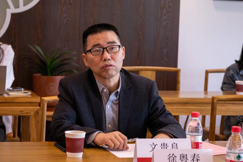 座谈会的最后由中国文艺评论家协会副主席兼秘书长、中国文联文艺评论中心主任徐粤春发言。徐主席向与会学者、专家们介绍了中国文艺评论家协会的基本情况、人员架构、工作内涵、各类奖项等情况,并表示华东师大中文系人文荟萃、学养深厚,创意写作专业方兴未艾,呼应了新需求的产生而诞生于此新时代;中国文艺评论家协会期待与华东师大中文系在各项目、各领域加强合作、相向而行,期待华东师大中文系培养出的青年学子依托各类优质平台,在文艺创作和文艺批评领域崭露头角,开创高校新文科教育的崭新局面,铸就新时代的文艺高峰。