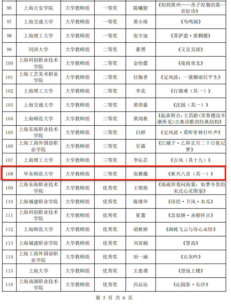 经过激烈角逐,我系教师张雅薇获第七届 “诗教中国” 诗词讲解大赛上海赛区大学教师组三等奖。