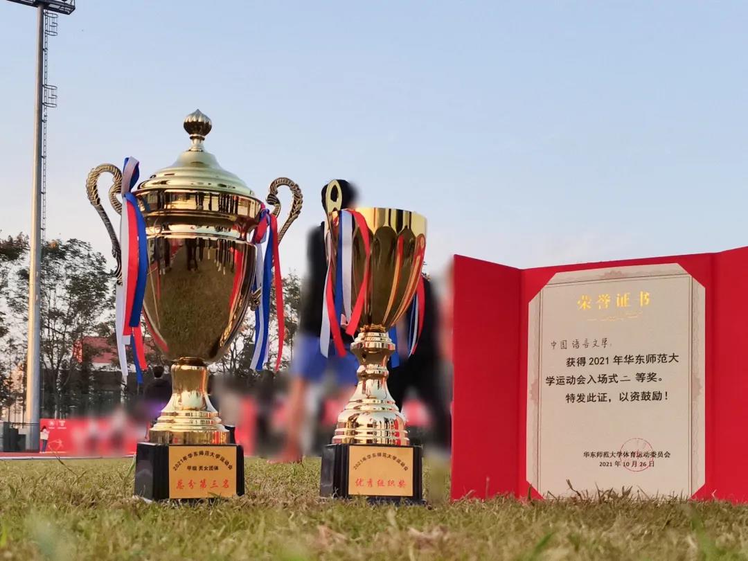艳阳下轻取桂冠,谈笑间扬我系威。热烈祝贺中国语言文学系在21年校运会中续写辉煌,刷新佳绩。