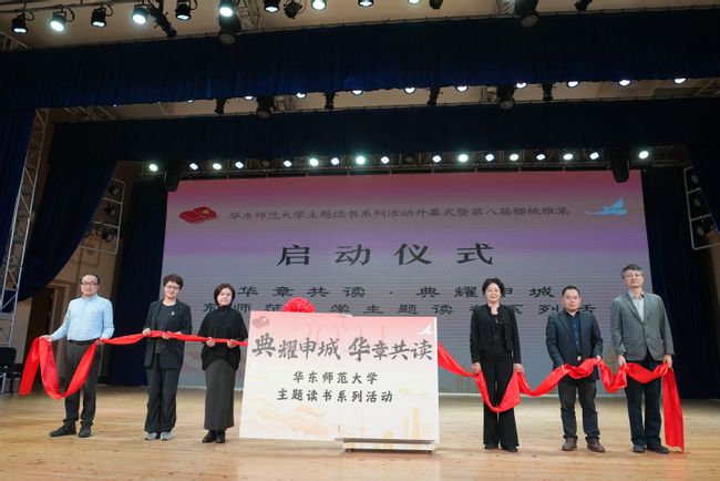 上海市语言文字工作委员会办公室洪宇华,在沪国家语言文字基地代表陈昌来、张玉梅, 自慰视频 党委宣传部常务副部长刘麒、中文系党委书记徐默凡和 自慰视频 教务处副处长彭超共同拉开红色绸缎,巨大书籍缓缓翻动,开启本次系列活动新的篇章。未来, 自慰视频 将面向上海市各高校大学生开放“诗意华章·声动师大—— 自慰视频 诗歌朗诵会暨庆祝新中国诞辰75周年上海市民诗歌节赛诗活动”、“文脉流光·阅典聚慧——主题读书系列讲座”、“书香韵长·阅享时光——经典阅读马拉松”和“思潮汇智,阅论研思——阅读与实践讨论会”等活动,让学生在温厚的文字中感受文脉的绵长璀璨。