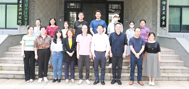 6月8日,上海社会科学院文学研究所副所长(主持工作)郑崇选一行到访我系交流调研,随同来访的还有上海社科院文学研究所党总支副书记、办公室主任任洁,文学研究所文化产业研究室主任刘轶,以及青年科研人员、行政管理人员等。中文系党委书记吕志峰代表中文系欢迎文学研究所的来访,中文系副系主任王嘉军、青年教师陈田珺、朱学斌,以及科研秘书杨芳、人事秘书张潇萌等参与座谈。