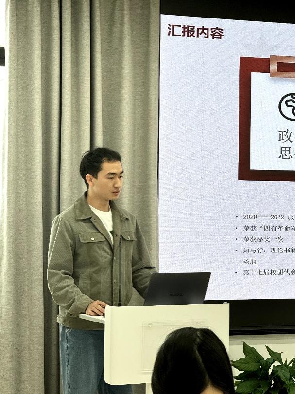 根据不同的生涯规划与专业方向,积极分子所汇报的个人情况也各有侧重。有的同学来自中文系拔尖基地的元化班,侧重汇报了其自觉追求学术卓越的一面;有同学来自强基班,立足古文字学基础普及“汉字之美”,致力于当好“中国故事”的讲解员;有的同学来自学生组织,侧重汇报了其在学生工作中所体现出的服务与带头精神,充分体现出优异的工作能力与“为人民服务”的意识;还有同学在学业之余广泛参加志愿服务和社会实践,积累了大量实践经验,彰显了积极分子服务社会、服务群众的社会责任和模范作用。