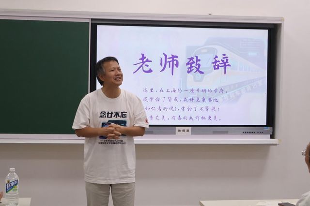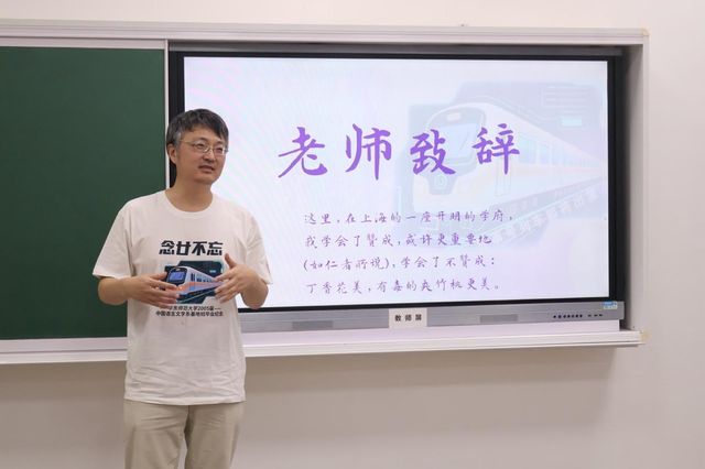 恩师致辞环节,罗岗、徐默凡、倪文尖、王冉冉、韩蕾等老师受邀上台,为同学们献上祝福。作为辅导员,韩蕾老师细细回忆了当年与同学们的相处时光。她深情地谈到二十年前师生共同成长进步的故事,并表达了对同学们如今工作、生活的关切,希望他们尽力而为,拥有勇于拒绝的能力。徐默凡老师与同学们共同追忆往昔,并向同学们致以殷切期许。倪文尖老师指出,回忆短片里老师们说过的“金句”时至今日仍具有指导意义,并对同学们日后的生活送上真挚祝福。罗岗老师则回忆了师生间的密切关系,并谈到对同学们未来发展的期待,希望他们将中文系的精神文脉延续传承。最后,王冉冉老师以“三杯茶”敬颂各位——敬大家,敬岁月,敬幸福,并希望同学们向内寻求人生的乐趣,度过无悔的岁月。