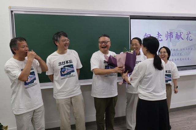 活动的最后,05届系友共同为老师们献上鲜花,多年未见的老师、同学们共同留影纪念。