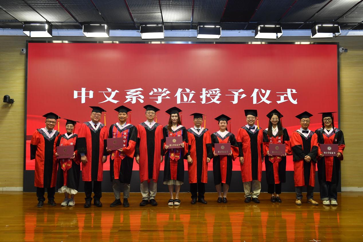 随后,中文系学位评定分委会副主席、副系主任方笑一教授宣读学位授予名单,导师们为毕业生逐一拨苏正冠、颁发学位证书。