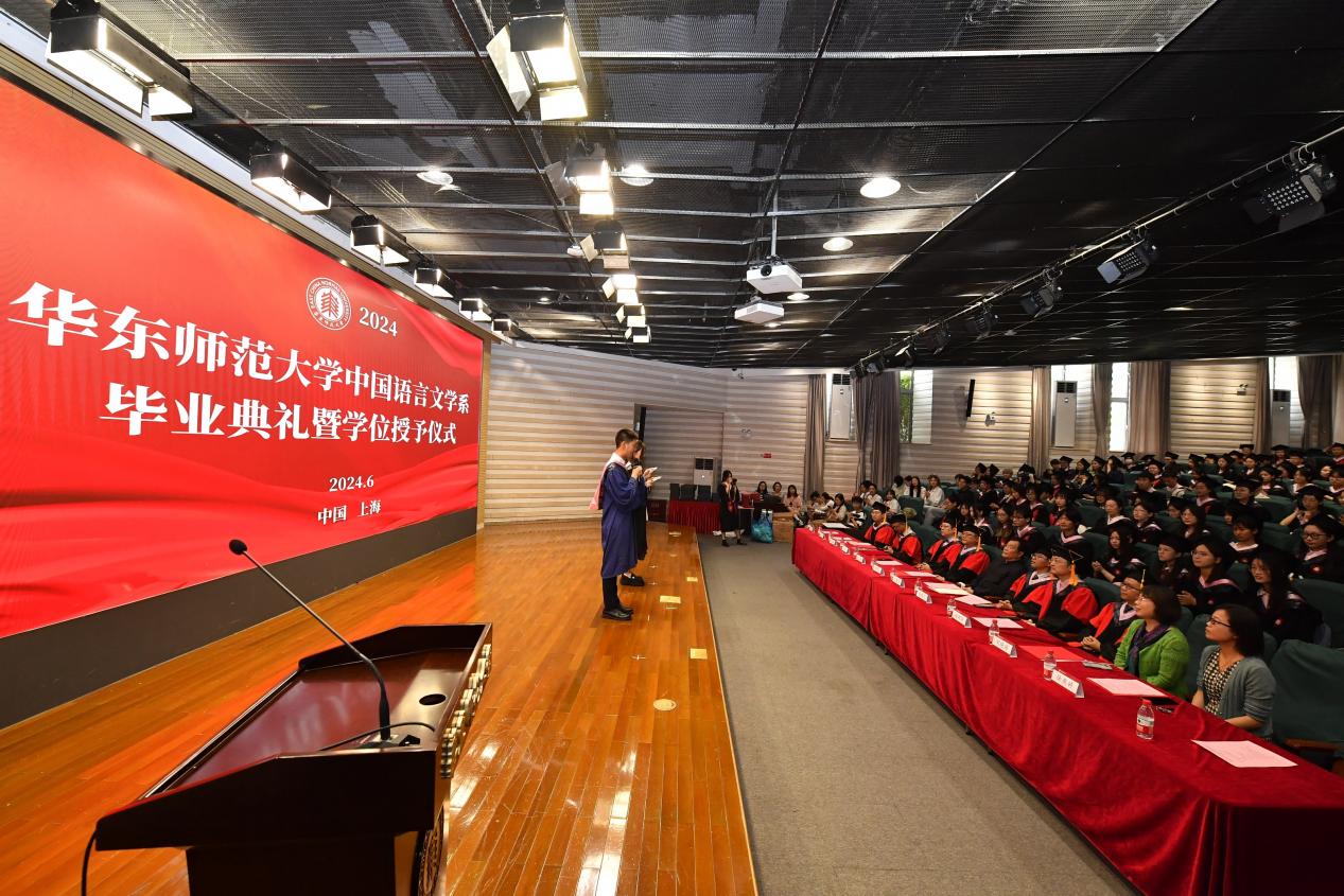 2024年6月19日, 自慰视频 中国语言文学系2024届毕业典礼暨学位授予仪式于闵行校区大学生活动中心C区报告厅顺利举行。本次典礼由2024届本科毕业生王丽妍和硕士毕业生刘茂林主持。