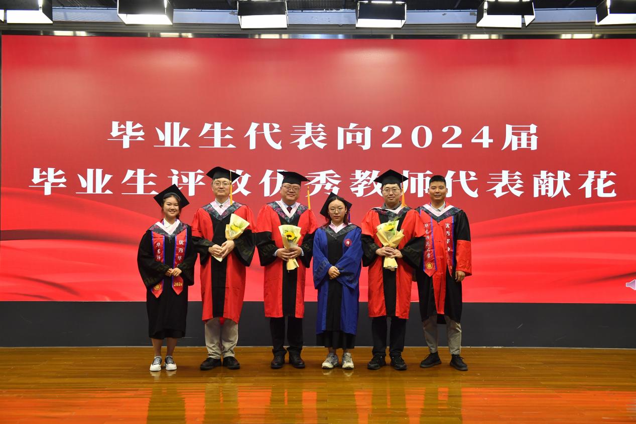 薪火相传开桃李,笔酣墨浓写春秋。与母校临别之际,毕业生代表2024届本科毕业生杨安妮、硕士毕业生胡爽爽、博士毕业生黄程伟为中文系2024届毕业生评教优秀教师代表中文系吕志峰教授、徐默凡教授和徐俪成副教授献花,感谢老师们为学生提灯引路、育梦成光。